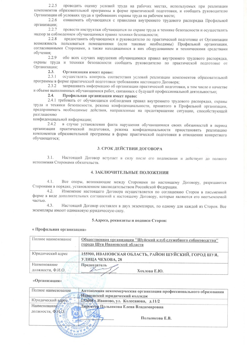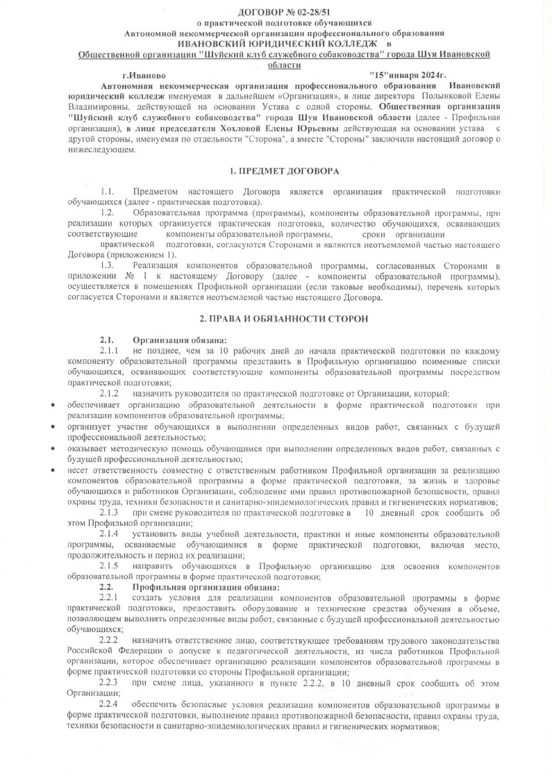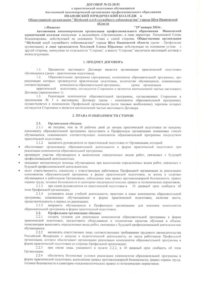 • ДОГОВОР С ОБЩЕСТВЕННОЙ ОРГАНИЗАЦИЕЙ ШУЙСКИЙ КЛУБ СЛУЖЕБНОГО СОБАКОВОДСТВА