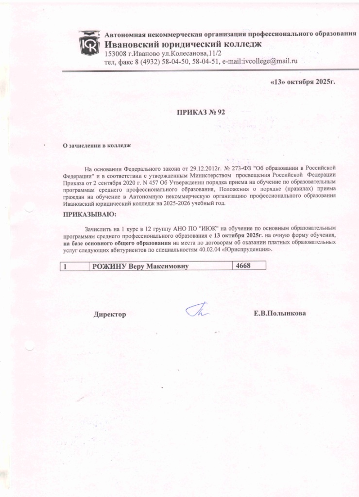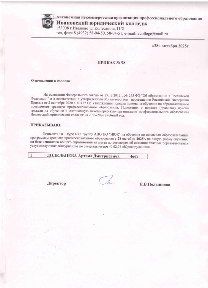 • ПОЛОЖЕНИЕ О ПОРЯДКЕ ОРГАНИЗАЦИИ И ОСУЩЕСТВЛЕНИЯ ОБРАЗОВАТЕЛЬНОЙ ДЕЯТЕЛЬНОСТИ В ИВАНОВСКОМ ЮРИДИЧЕСКОМ КОЛЛЕДЖЕ