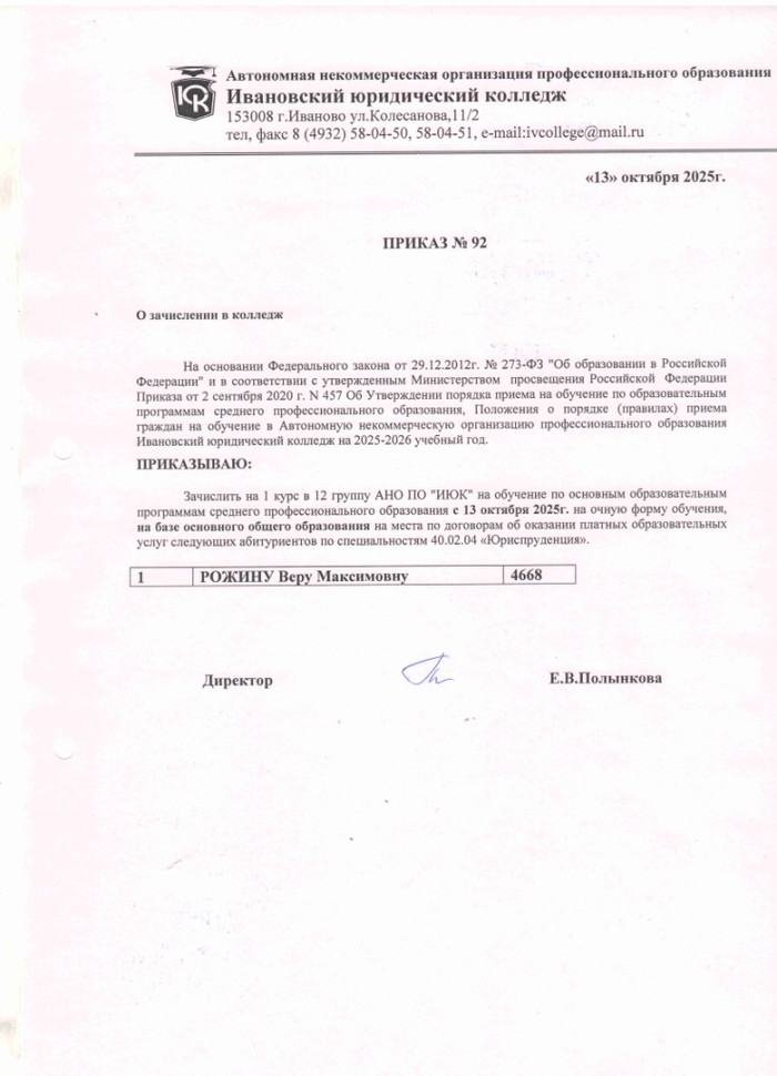 ИВАНОВСКИЙ ЮРИДИЧЕСКИЙ КОЛЛЕДЖ